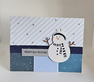 Hello Friday and welcome weekend! Today's project share is my last design team project for the Cut it Up challenge blog for 2024. The theme for challenge #320 is Anything Goes, I meant to share a scrapbook layout but I didn't get it finished in time! I used Sketch N Scrap card sketch #280 for inspiration to create my card. It is a winter themed card using papers from the Recollections Frosted Jumiper 6x6 paper pad and a glittered navy strip from DCWV. Used a snowman die and a stamped sentiment using a Spellbinders stamp set. Finished the card by adding some star gems.
